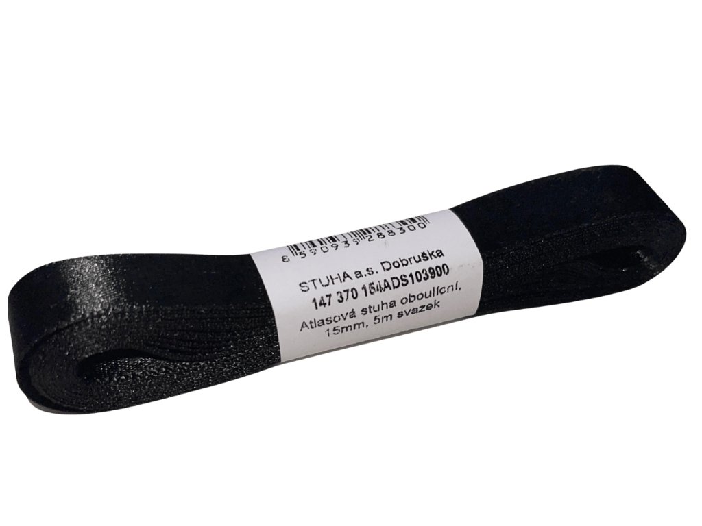 Atlasová stuha oboulící 15 mm (svazek 5m) - černá