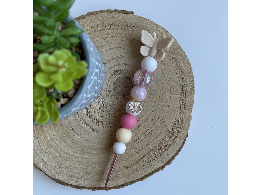 - Ruční výroba: Každý háček je jedinečný, ozdobený s láskou pomocí silikonových korálků.