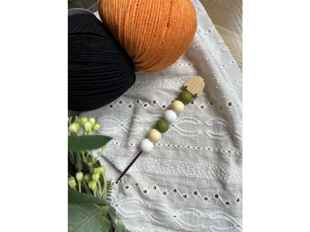 - Ruční výroba: Každý háček je jedinečný, ozdobený s láskou pomocí silikonových korálků.