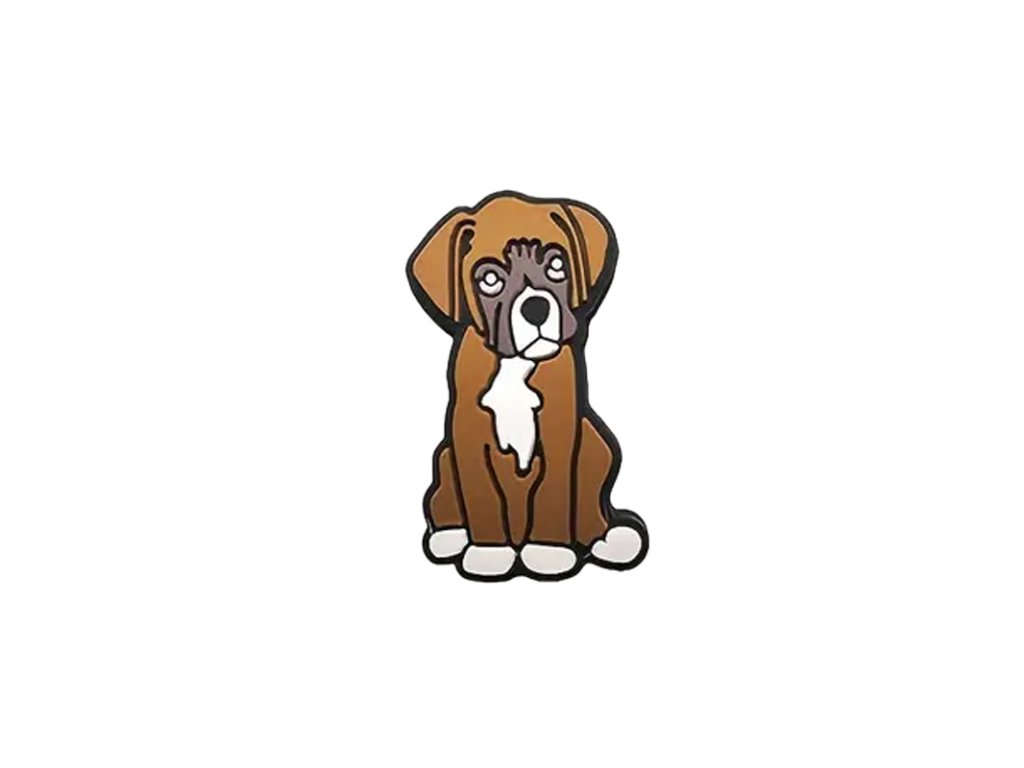 Silikonový korálek ve tvaru pejska o rozměrech 3 x 1,8 cm.