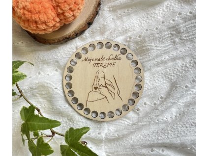 Podtácek z 3 mm březové překližky s vygravírovaným vzorem ženy s kávou a textem Moje malá chvilka TERAPIE. Vhodný k dalšímu dotvoření, barvení nebo dekorování.