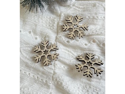 Dřevěné výřezy sněhových vloček z 3 mm březové překližky. Přírodní nelakovaný povrch, vhodné k dekorování, lepení nebo barvení.