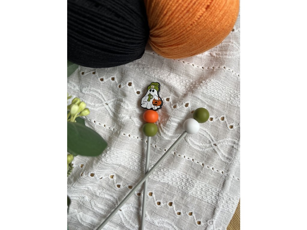 Ručně ozdobené kovové jehlice se silikonovými korálky. Vhodné na pletení i spojování háčkovaných nebo pletených výrobků.