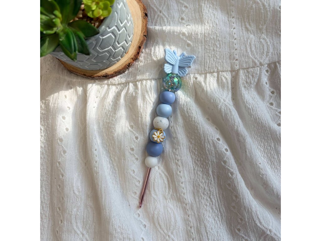 Háček se silikonovými korálky - Modrý motýlek