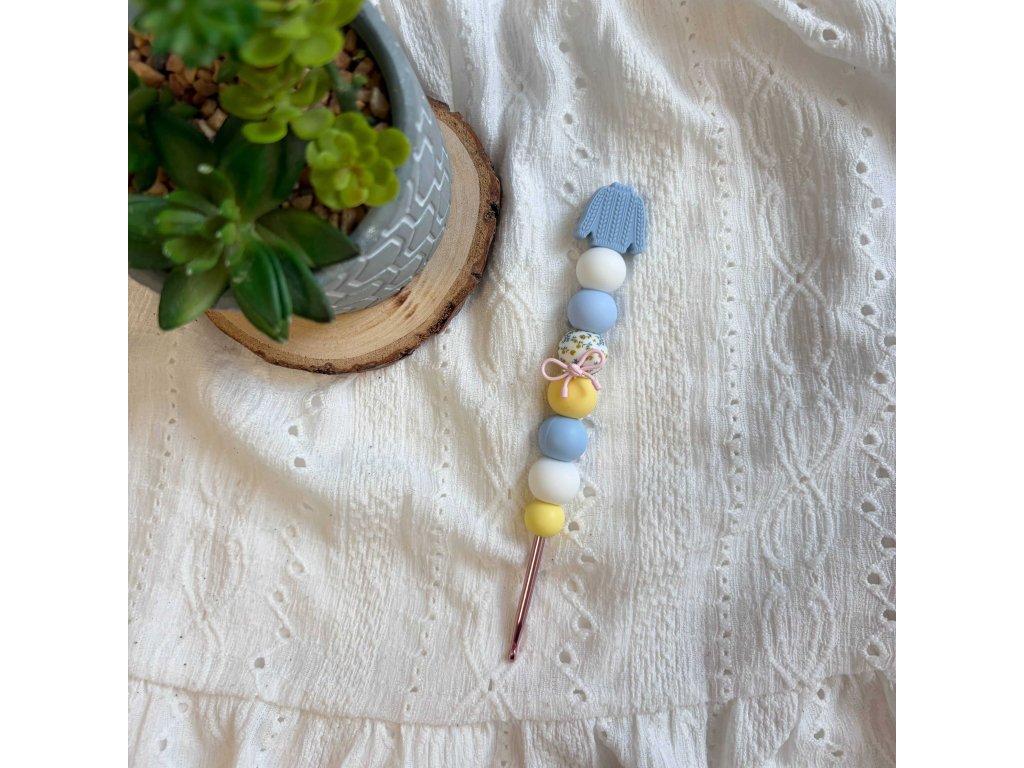 - Ruční výroba: Každý háček je jedinečný, ozdobený s láskou pomocí silikonových korálků.