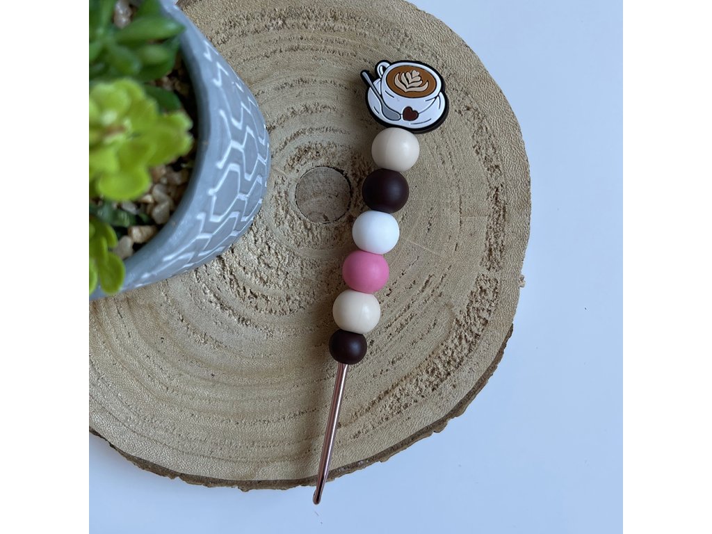 Ručně ozdobený kovový háček silikonovými korálky