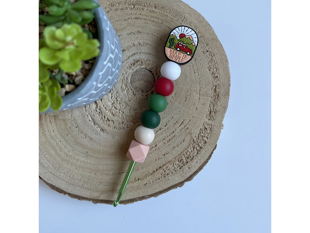 - Ruční výroba: Každý háček je jedinečný, ozdobený s láskou pomocí silikonových korálků.