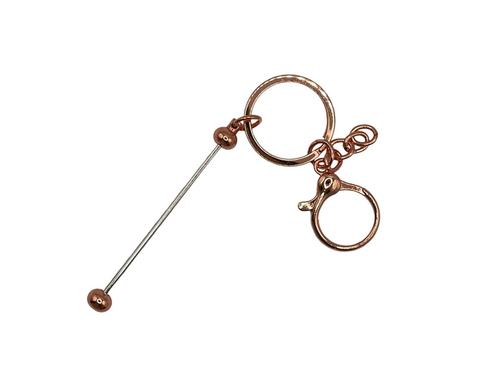 Tato klíčenka v krásném odstínu rose gold neboli barvě růžového zlata je perfektním doplňkem pro každého, kdo miluje kreativní tvoření a hledá svůj jedinečný doplněk. S kovovým kroužkem, karabinou a tyčkou na navlékání korálků je skvělou volbou pro personalizaci a výrobu originálních přívěsků.
