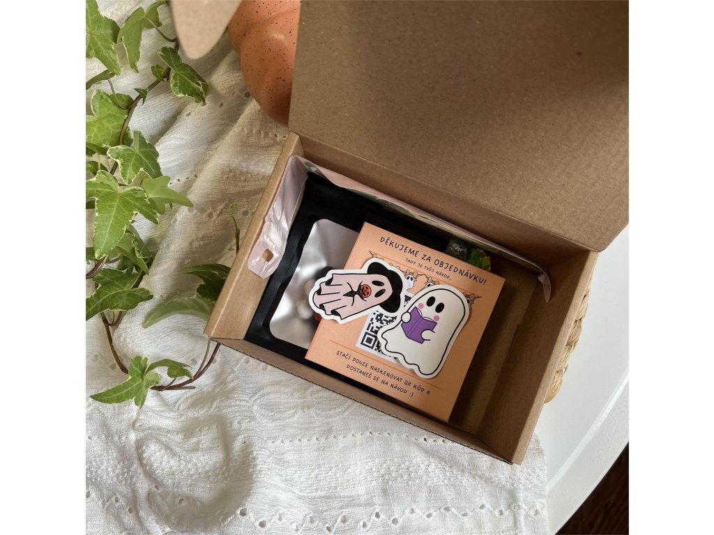 Tematická sada, se kterou si můžeš ozdobit vlastní háček v duchu Halloweenu! V krabičce najdeš kovový háček o velikosti 4 mm, sadu silikonových korálků v typických halloween barvách a QR kód s video-návodem, jak si háček krok za krokem ozdobit.
