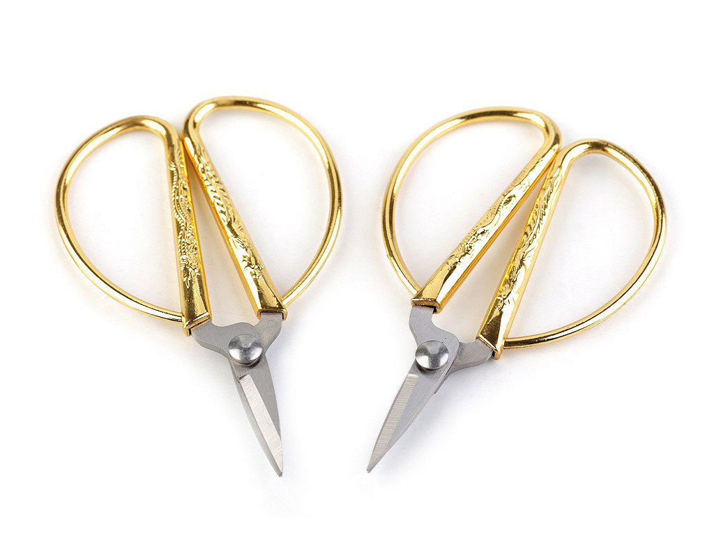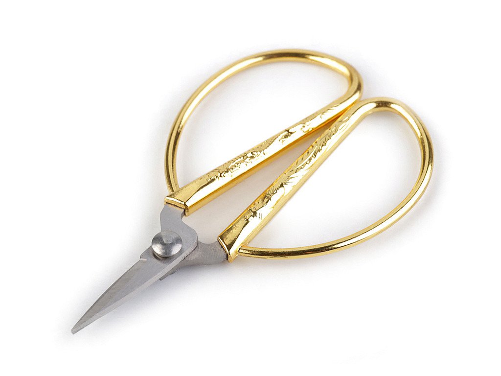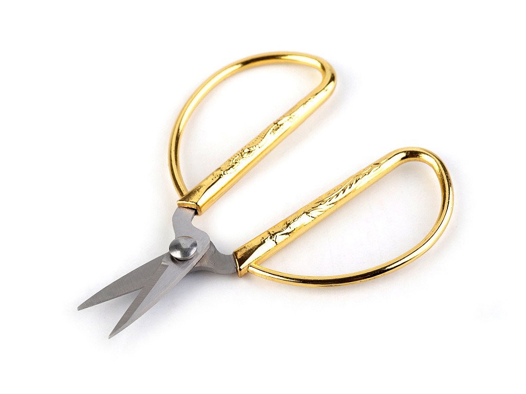Kovové nůžky využijete především k odstřihování nití při šití. Na první pohled zaujmou ozdobnou rukojetí zajímavého tvaru, která dodává nůžkám elegantní vzhled.