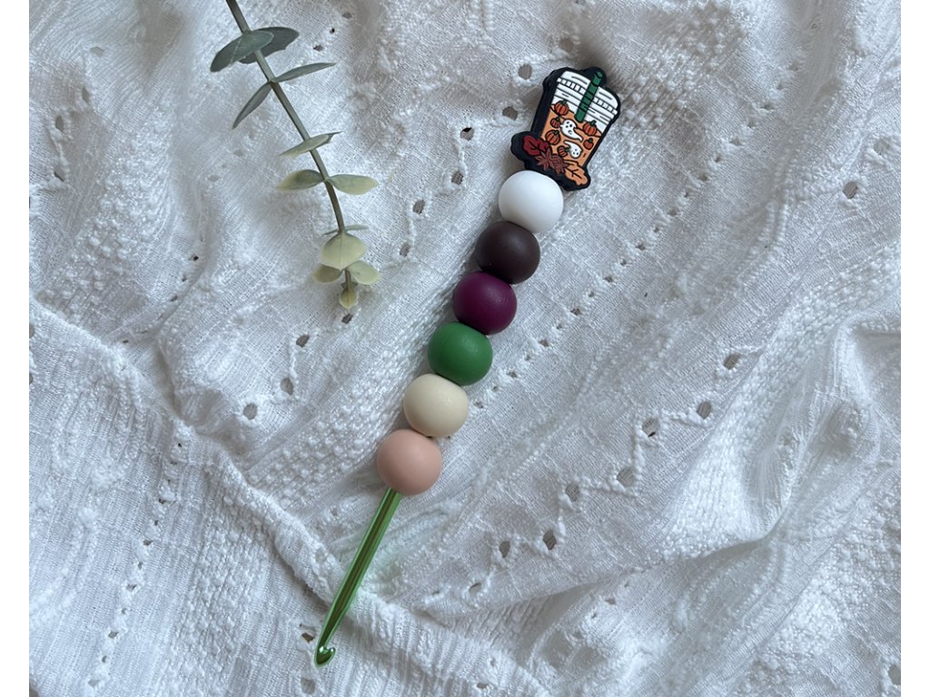- Ruční výroba: Každý háček je jedinečný, ozdobený s láskou pomocí silikonových korálků.