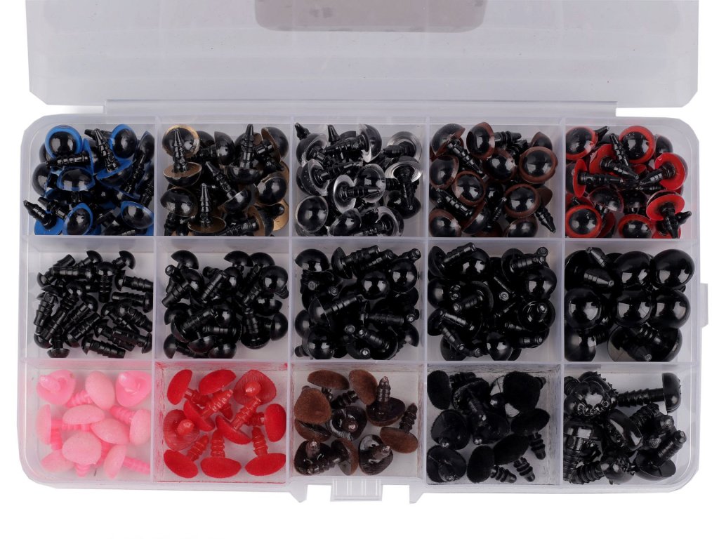 Sada bezpečnostních očí a čumáků v plastové krabičce