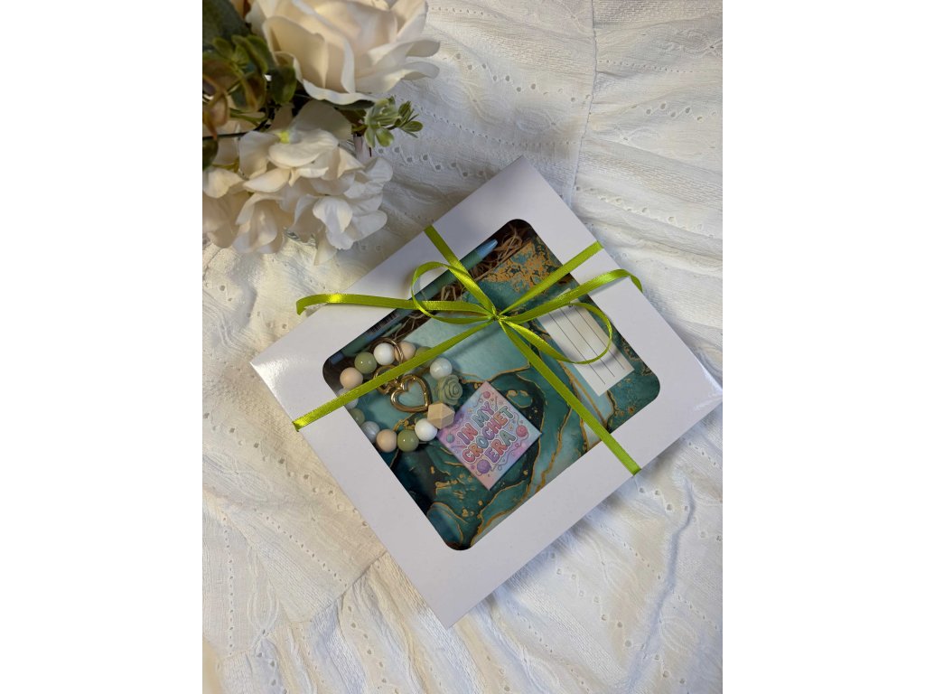 Praktický dárkový box kombinující drobné doplňky pro každodenní použití. Obsahuje linkovaný sešit, propisku, klíčenku se silikonovými korálky a magnetku. Vše je připraveno v dárkovém balení.