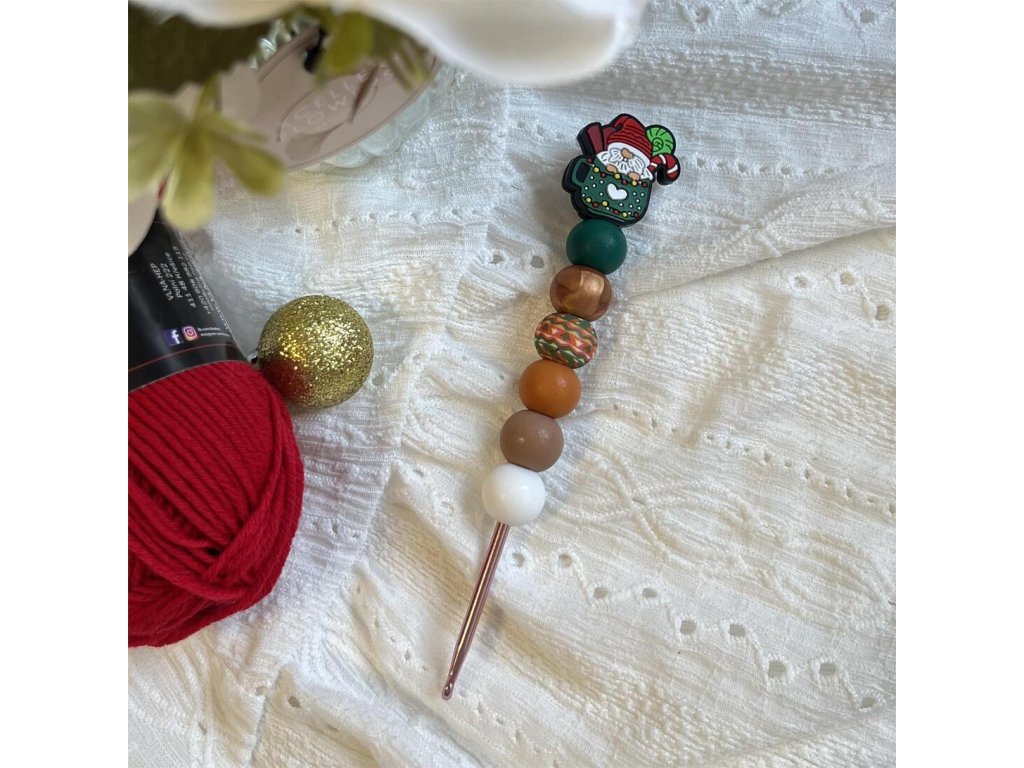 Vánoční skřítek v hrnku - Korálkový háček