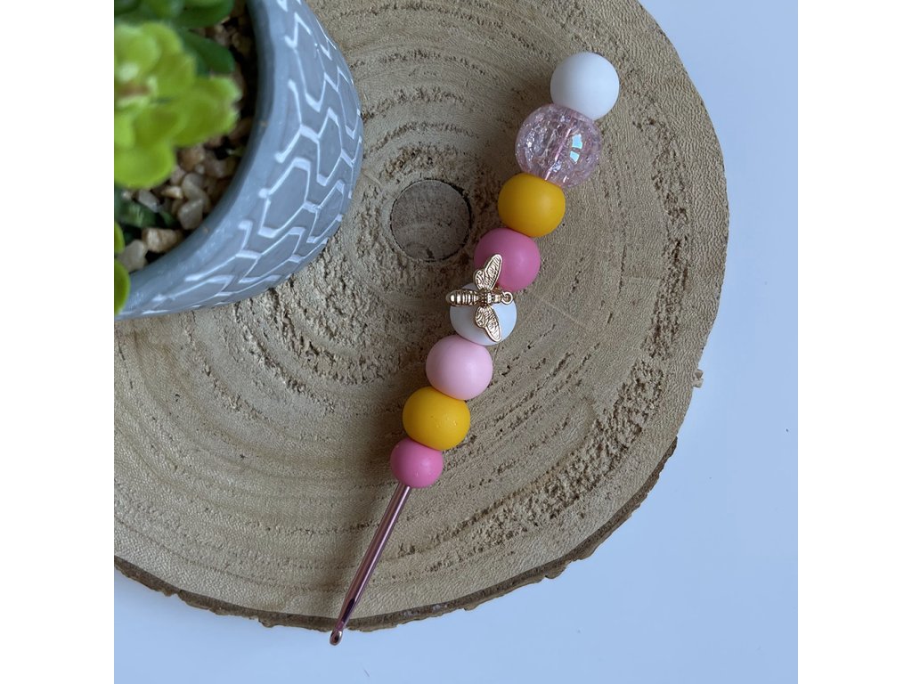 - Ruční výroba: Každý háček je jedinečný, ozdobený s láskou pomocí silikonových korálků.