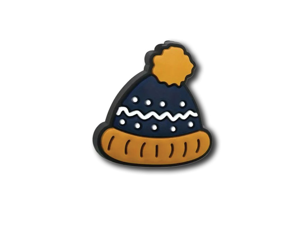 Silikonový korálek ve tvaru zimní čepice o rozměrech 2,9 x 2,8 cm.